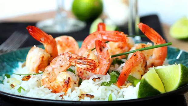Grilled shrimp on coconut rice!M-M-M-M-M-M-M GOOD!